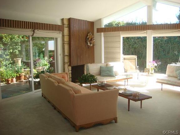 Walk into the living room with floor to ceiling windows & behold an incredible Catalina & ocean vista plus an expansive green-belt view of a separate parcel to the south! The kitchen was remodeled & boasts custom cabinetry with pull-out cabinets, designer tiles, gas cooktop, 3 appliance garages, double ovens, brand new, barely-audible dishwasher, recessed/task lighting, center island with breakfast bar & room for a morning table. Exiting out french doors leads to a stone patio, surrounded by lush landscaping. The floor plan is perfect for privacy with one bedroom/bath down from the main level (1/2 flight ) & off the expanded family room; master suite is upstairs with BRs 3 & 4. The family room has a 2nd FP with extensive tile hearth, built-in shelves, & media niche to accommodate large TV. Nearby, a private hobby or computer station space with built-in birch wood cabinets- former laundry rm., (built-ins could be removed). Upstairs, 3 separate closets in the center hall, & a spacious &