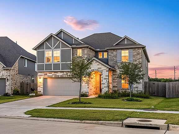 Enjoy peaceful living with a stunning lake view in this elegant two-story home featuring 4 bedrooms, located in the beautiful Kingdom Heights community. As you step inside, you’ll be greeted by a graceful curved staircase, soaring high ceilings, and expansive windows that fill the space with natural light. The open-concept layout connecting the kitchen and family room creates a warm and inviting atmosphere—perfect for gatherings with family and friends. The primary suite on the first floor offers a true retreat, complete with a spacious walk-in closet and a serene bathroom with a relaxing soaking tub. Upstairs, a large game room plus media room provides endless possibilities for family entertainment and leisure. Fridge, washer, dryer included. Conveniently located near US-59 South and Highway 6, residents enjoy easy access to nearby shopping, dining, and local amenities. Don’t miss the opportunity to own this dream home!