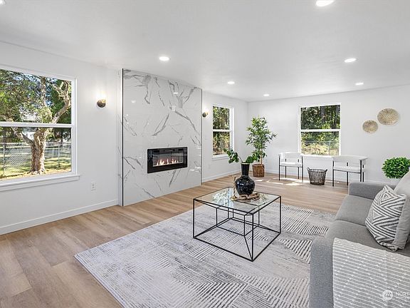 Welcome to modern living nestled in coveted University Place! Recently updated w/new roof, windows, fresh paint, & new landscaping. Spacious & sophisticated LR greets you w/commanding full height electric FP & abundance of natural light. Reimagined kitchen offers SS appls, farmhouse sink, full-height designer backsplash, eating bar. Dining area w/slider to patio & oversized fully fenced yard w/greenbelt privacy ideal for gatherings. Sought-after office/flex room on main floor. Primary bedroom feat. large W-I-C & private bath. 2 generous bedrooms & stylish full bath complete 2nd floor. Fully finished 2-car garage & long driveway provide ample parking & storage. Prized UP schools. Minutes 2 esteemed Chambers Bay, Whole Foods, T.Joes, TCC.