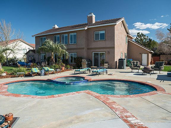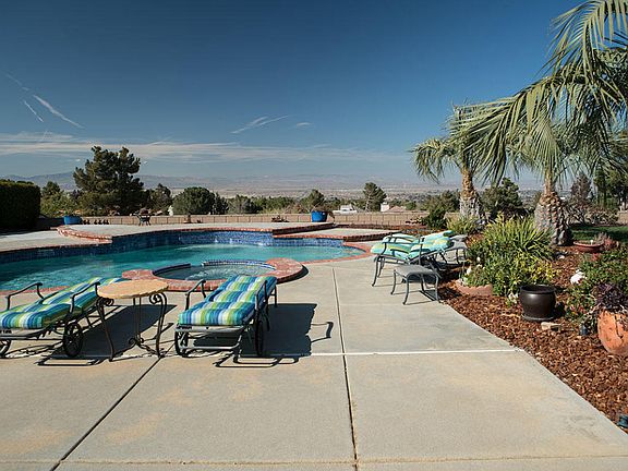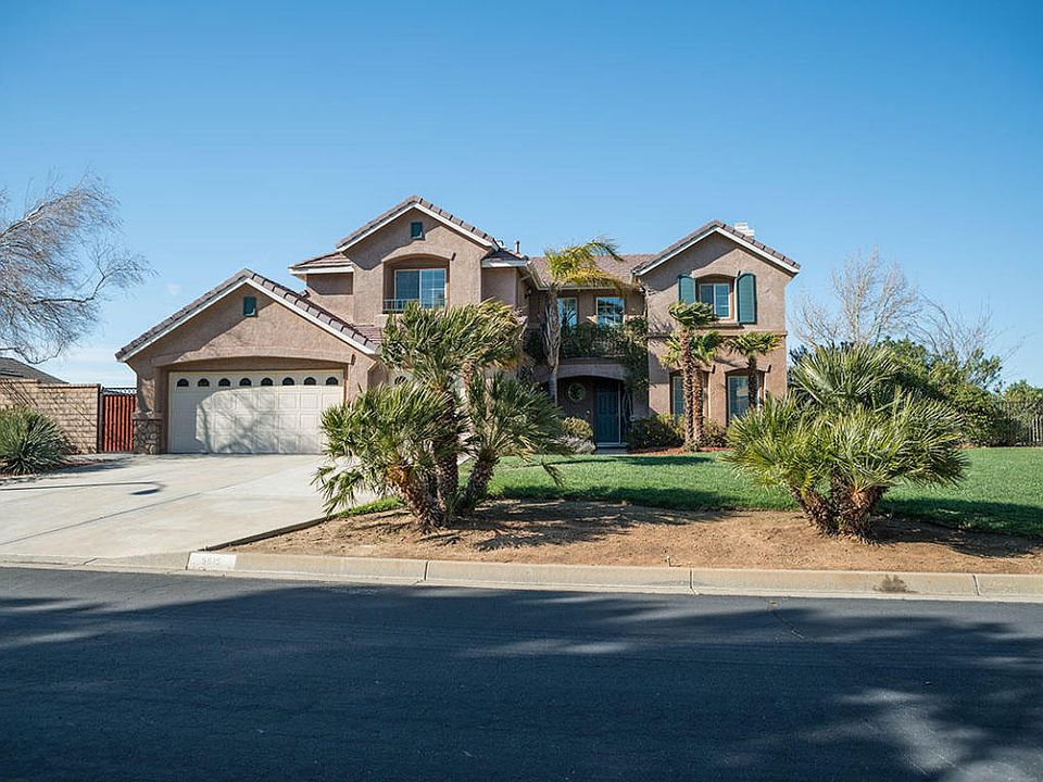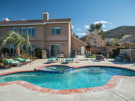 Fabulous 5+3 with sparkling pool & spa. 1/2 acre lot with panoramic view of the Antelope Valley. Private gated community of Belle Vista. $45/mo. HOA dues and NO Mello Roos. Terrific floor plan features formal living & dining, large family room, bright, cheery kitchen w/ center island and walk-in pantry. Downstairs bedroom w/ full bath. Dual staircase to second level. Awesome master suite and private retreat w/ cozy fireplace. Large master bath with dressing area and walk-in closet and door to outside front balcony. Inside laundry room and triple car garage. Many great features include ceiling fans, mirrored wardrobe doors, security system, ceramic tile flooring and more. Outdoor storage shed. Must see this wonderful home!