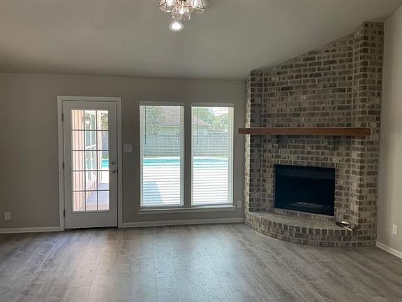 Wood burning fireplaceLarge family roomNew carpetCorner lotNeutral colorsIn-ground pool
