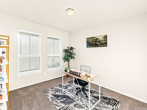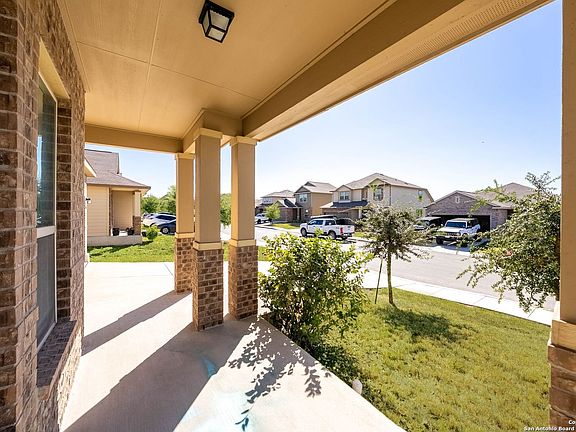 Welcome to this beautifully maintained four-bedroom, two-and-a-half-bath home designed for both comfort and connection. As you arrive, a welcoming covered front patio leads you into a spacious, open-concept living area. The kitchen truly serves as the heart of the home, showcasing rich espresso 42 in. cabinets, granite countertops, and two expansive granite islands-a rare and highly functional feature. Whether it's cooking, helping with homework, or gathering with loved ones, this space is as versatile as it is inviting. The 16x16 ceramic tile flooring flows seamlessly through the kitchen and living areas, combining style with easy maintenance, complemented by recessed lighting throughout the home. Just off the main area, a flexible bonus room offers endless possibilities-perfect for a home office, formal dining room, or playroom to suit your lifestyle. The spacious primary suite provides a relaxing retreat with a double vanity, a tiled walk-in shower, a soaking tub ideal for unwinding after a long day and a grand walk-in closet. The laundry room, conveniently located downstairs, includes an additional storage area with the potential to create a custom dog-wash station or extra utility space. Upstairs, a generous loft area can easily transform into a media room, workout area, or additional bedroom. Each secondary bedroom offers ample space and walk-in closets for optimal functionality with plenty of space to grow into. Step outside to enjoy the covered back patio, perfect for weekend barbecues or peaceful evenings outdoors. A two-car garage adds plenty of room for parking and extra storage. Located within 5 miles of Fort Sam Houston military base, and zoned to the highly regarded Judson ISD, this home also offers unmatched convenience-restaurants, shopping, and grocery stores are just minutes away. Thoughtfully designed and well cared for, this home offers the ideal balance of space, comfort, and practicality. Schedule your showing today and imagine your family making memories here for Christmas!