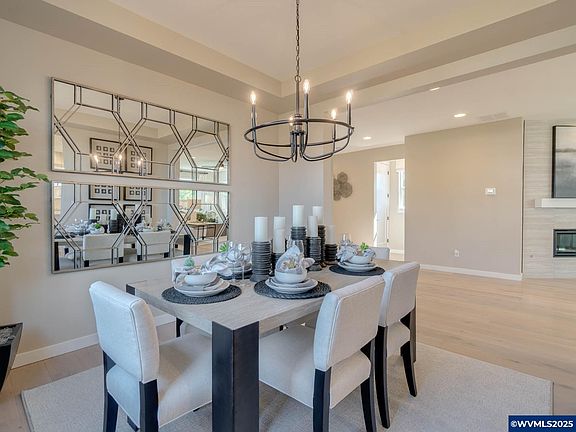 Beautiful design meets an incredible location in this move-in ready 2025 NW contemporary home. Upgrades include 9 ft ceilings, 8 ft doors, custom interior paint, matte black fixtures, and timeless wood and stone finishes throughout. The gourmet kitchen features a quartz island with custom cabinetry and stainless appliances. Hard-to-find formal dining room perfect for holiday entertaining! Upstairs, an open loft provides added space for work, fitness, or play. Four generously sized bedrooms include a primary suite with tiled walk-in shower and expansive closet. Outside, the fully fenced, landscaped backyard features a covered back patio and garage access door to keep outdoor gear organized. Community offers Mount Hood views and quick access to shopping, schools, parks, and recreation. No HOA! Sample photos and 3D tour show a similar floor plan and finishes; updated photos coming soon. Ask about incentives available with the builder’s preferred lender.
