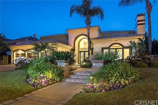 WOW! REDUCED 100K! was in multiple offers before-now is your chance to get this great house! Nestled in a prime location in the exclusive guard gated community of Mountain View Estates is this beautiful Mediteranean home with a private lush back yard. As you enter through the wrought iron and glass doors, you are greeted by the classic entry with a sweeping curved staircase, high ceilings, stone floors and tons of natural light. Situated on a flat cul-de-sac, this inviting and immaculate home has so much to offer w 5 bedroom suites and an office.The kitchen features white wood cabinets, granite counters, wood floors, Viking double ovens, a Bosch dishwasher, and a walk in pantry. The sun kissed living room offers coffered ceilings, gorgeous French doors to a veranda, and a fireplace for those nice Calabasas evenings. Other highlights include a spacious Dining Room with wainscoting, a spacious family room and a large ensuite bedroom downstairs. Upstairs you will find a luxurious master suite with a romantic fireplace, two large walk in closets, an updated master bathroom and 4 more bedrooms all ensuite. The private resort-style backyard offers large grassy areas, a refreshing pool/spa with a slide for fun, wonderful covered patios for those warm summer days and lovely built in Barbecue area with sink and with more seating for entertaining. Other features include a sports court, recently painted exterior, newer AC/Heat and a newer water heater. Las Virgenes Schools!