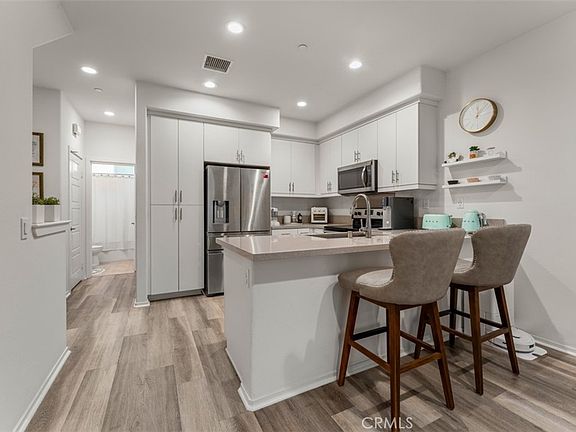 Welcome to Strada Pointe, one of Buena Parks most beautiful, gated, modern town home developments. This nearly new home has an excellent location and spans three levels, featuring three bedrooms and three bathrooms, a two-car tandem garage, paid solar, and Level 2 electric vehicle charging. The first floor offers a formal entry and direct garage access. The second level highlights the open concept living area. It includes a guest bedroom with adjacent full bathroom along with a contemporary kitchen and large living room with outside patio deck. Upgrades include luxury vinyl plank flooring, quartz kitchen counters, LED lighting, plantation shutters. Upstairs, the private third level hosts a primary suite with a dual sink, en-suite bath along with a third bedroom, third bathroom, and a convenient laundry room. Throughout the home, upgrades include window drapes, blinds, ceiling fans, raised panel interior doors, luxury plank flooring. This gated community has excellent resort-style amenities including a pool and spa with cabanas, dog park, BBQ and picnic areas, fitness zone, and playground. With easy access to the 5 and 91 freeways, this stylish townhome offers the perfect blend of modern updates, secure living, and commuter convenience.