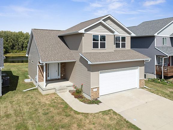 Welcome to your future home, a beautiful blend of modern charm and comfort overlooking a pond! Located in a serene neighborhood, this inviting property is designed for both relaxation and entertainment. As you step inside, the open floor plan immediately greets you with warmth and space. The kitchen, featuring stunning granite countertops and rich dark cabinetry, illuminated by stylish pendant lighting is perfect for meal preparation or entertaining. This seamlessly connects to a living area, complete with vinyl flooring and a cozy fireplace, creating a space where memories are sure to be made. A convenient half bath on the main level adds practicality to this inviting space. Venture upstairs to find three spacious bedrooms. The master suite offers the perfect retreat with a spacious walk-in closet and a bathroom boasting tiled floors for a touch of elegance. Another full bathroom serves the additional bedrooms, while the upstairs laundry ensures convenience is always within reach. The lower level offers a fully finished space with a fourth bedroom, an additional family or recreation room, and another full bathroom with beautiful tiled floors, making it an ideal spot for all your needs.  Outdoors, the property offers more than just a view—step onto the deck and take in the serene pond, a perfect backdrop for morning coffee or evening relaxation. The attached two-stall garage ensures all your storage and parking needs are met, while the overall location offers peace and tranquility. A harmonious blend of comfort, style, and convenience awaits you at every turn. Don’t miss out on this incredible opportunity to make this house your home!