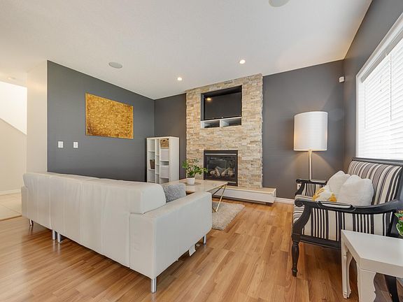 Situated in family-friendly McConachie, this original-owner 3 bed, 2.5 bath 2-storey with double attached garage was thoughtfully upgraded during construction and sits on a 608 mA² lot in a partial cul-de-sac for a quieter setting. The main floor features durable laminate and tile, a welcoming living room with fireplace, and an upgraded kitchen with a large island, ample storage and open flow to the dining room, all brightened by windows and patio doors that bring in natural light and open to the yard. A laundry room and 2 pc bath complete this level. Upstairs, a bright bonus room joins 3 bedrooms, including a primary with walk-in closet and 5 pc ensuite, along with an additional 4 pc bath. The basement is ready for your design ideas while the backyard offers a rear gate for future RV parking plus space to play or garden. Updates include a new furnace and hot water tank (Oct 2023) and newer appliances. With schools, parks, shopping and the Henday nearby, this home blends comfort, space, and convenience.