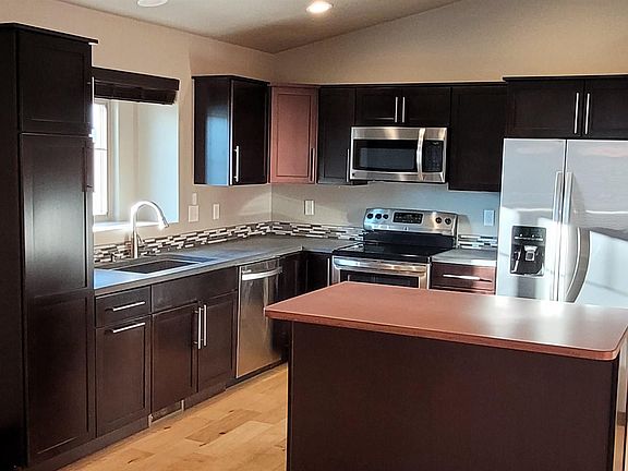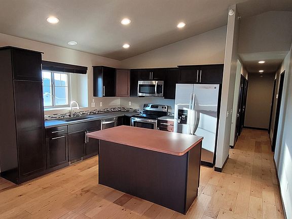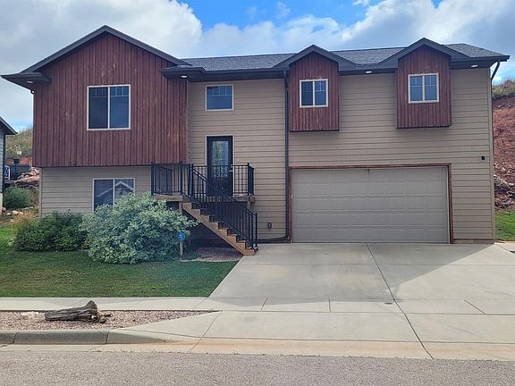 Modern home in a great neighborhood in the Southwest part of Rapid City! The home has an open floor plan with vaulted ceilings and top notch finishes!! you will love the designer features of the kitchen, concrete countertops (in the kitchen and bathrooms), maple cabinets, back splash, large island with storage, farmhouse sink, stainless steel appliances. Main level has 3 bedrooms including the primary suite with private bath, and another full bath. Downstairs you will find a large family room with gas fireplace, 4th bedroom, another full bathroom, and access to the 24x26 oversized two car garage.