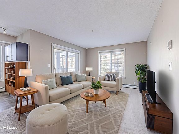 Super Location at MacTaggart Ridge Gate! Bright and modern! 925 sqft of contemporary living in a highly desirable community. Excellent investment! The open-concept layout features a bright, south-facing living room with a large window and patio door leading to a spacious Corner unit balcony with open views. A well-appointed kitchen with granite countertops, dark cabinetry, and stainless steel appliances. A spacious primary suite, with a walk-through closet, and a private 3-piece ensuite. A generously sized second bedroom with a south-facing window. Flexible open entrance area, ideal for a home office. Additional highlights include: In-suite laundry with storage. Titled, heated underground parking, Prime location—walking distance to shopping, transit, ravine trails, and dining at Currents of Windermere, quick access to Anthony Henday Drive This is the perfect home for first-time buyers, downsizers, or investors looking for a move-in-ready condo in a fantastic location.