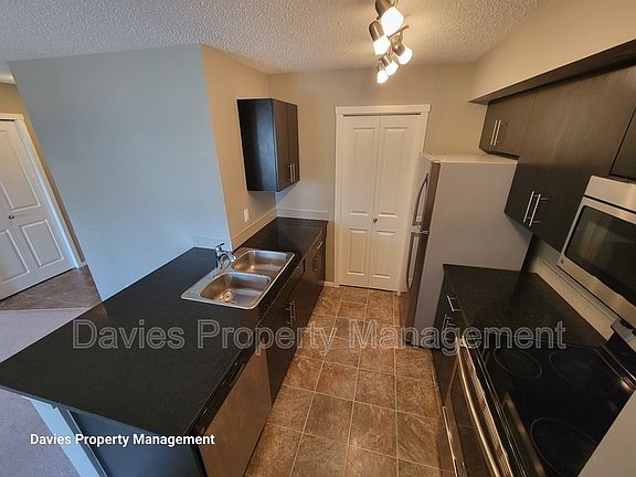 This stylish 2-bedroom, 2-bathroom condo offers the perfect blend of comfort and convenience in Edmonton's desirable Mactaggart community. The open-concept living area is flooded with natural light, providing a welcoming space for relaxation and entertainment. The fully equipped kitchen boasts stainless steel appliances, sleek countertops, and ample cabinet space. The master bedroom features an en-suite bathroom and a walk-in closet, while the second bedroom is perfect for guests or a home office. Enjoy the added convenience of in-suite laundry, a private balcony, and secure parking. With easy access to parks, shopping, and major roadways, this condo is ideal for those seeking a modern, low-maintenance lifestyle.