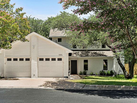 Welcome to a modern masterpiece tucked away in the quiet pocket neighborhood of Raintree Estates. This fully renovated home offers 2,136 square feet of stylish living space on a sprawling 10,018-square-foot lot with towering trees. Step inside to experience comfort and functional living with high-end finishes throughout. Nearly every surface of this property has been updated. The interior features high vaulted ceilings in the living room, opening to the dining and kitchen; all bathed in gorgeous natural light and complimented by the Turin White Oak solid hardwood floors (which can be refinished multiple times). The show-stopping kitchen has a huge island, quartz countertops, designer lighting, and top-of-the-line appliances including gas cooktop with stunning custom plaster vent hood. The main floor primary suite features a walk-in closet and beautifully remodeled en suite bathroom with marble counters, Moen fixtures, modern freestanding tub and glass enclosed shower. Powder room is a gem with designer wallpaper and quartz counters. Upstairs you'll find two spacious bedrooms and beautifully updated bathroom. Entertain in the inviting living area with a fireplace and oversized windows overlooking the massive backyard. With freshly installed hardscaping, you can relax in style in the park-like setting with majestic trees all around and room to add home office studio/shed. Fence was recently replaced and yard is fully sprinkled. Incredible storage throughout this home makes it live even larger: hallway cabinetry, deep under stairs storage, and oversized garage. HVAC installed 2022, water heater 2024, select windows replaced, exterior and interior of home repainted 2021, patio installed 2024. Home has been meticulously cared for. Feeding to top ranked schools in the city, this residence is perfectly positioned in scenic northwest Austin, surrounded by hill country beauty yet just a short drive from shopping and entertainment at The Domain or Downtown.