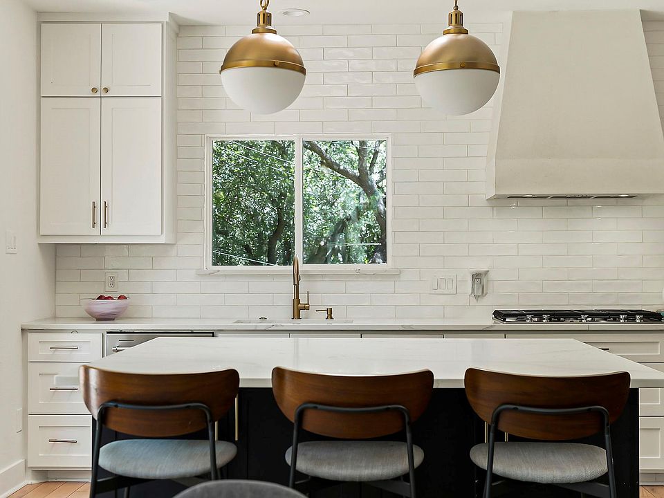 Modern freestanding tubMajestic treesMassive backyardTowering treesOversized windowsQuartz countertopsShow-stopping kitchen