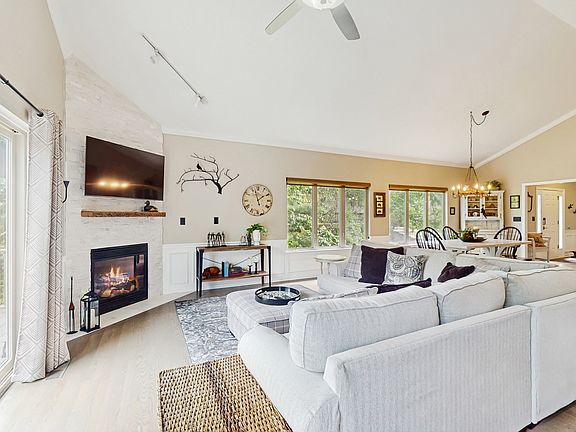 This remarkable home truly has it all! As you enter, you'll be welcomed by a spacious foyer that flows into the expansive great room. Your eyes will be drawn through the wall of sliding glass doors to the huge deck and the lush, tree-lined lawn beyond - it's a truly impressive first impression! The vast open-concept living space, combining the kitchen, living, and dining areas, is highlighted by an oversized island, soaring vaulted ceilings, and a beautifully remodeled floor-to-ceiling stone fireplace. The generous first-floor primary bedroom offers both space and a lovely view. The enormous primary bathroom, recently renovated, features a relaxing soaker tub, dual vanities, and a large shower with elegant stone accents. Upstairs, you'll discover three more exceptionally spacious bedrooms and a thoughtfully designed hall bath with double sinks and a separate shower area for added convenience. The recently remodeled laundry room is also quite roomy, providing ample space for all your laundry needs. And that's not all - the walk-out basement is exactly what you've been searching for! It offers a fantastic rec room area, space for a pool table, a unique bar, and plenty of additional room for seating and entertainment. You'll also find a fifth bedroom (also perfect for a workout room or office), as well as another smaller craft room/office, full bathroom and abundant storage space. Finally, this wonderful home includes the sought-after three-car garage and is located in a maintenance-free subdivision, so you can say goodbye to yard work and exterior upkeep! Newer items include but are not limited to: furnace, A/C, hot water heater, trex deck, stainless steel appliances and sliders. Multiple offers, highest and best due 6/2/25 at 6:00pm.