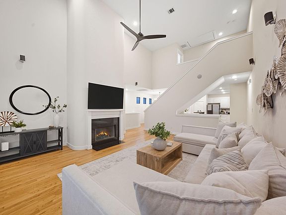 Welcome to your new home in Cottage Grove! Fall in love with high ceilings, modern design, and elegant finishes that create a warm, yet sophisticated living experience. A unique floor plan offers two bedrooms and a full bath on the 1st floor, ideal for a gym, a study, or guests. The 2nd floor reveals an open-concept, island kitchen, dining area, and a light-filled living room with surround sound, where you can relax by the fireplace or entertain guests. The primary suite spans the 3rd floor, exuding luxury with a jetted tub, a shower, and a walk-in closet. Updates include a new A/C (2019/2017), carpet and water heater (2021). Enjoy private off-street parking and a secure gated entry with remote access. Zoned to highly rated Memorial Elementary and Hogg Middle School, this home combines style and convenience with a prime location near local favorites, shopping, and quick access to major freeways. Proximity to The Heights and Downtown puts the best of Houston within easy reach.