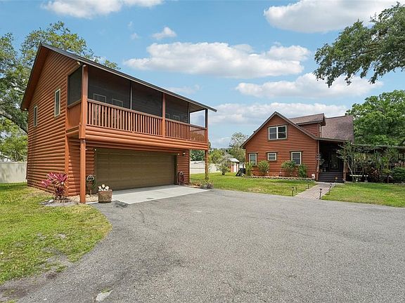Perfect & rare home for those who want it all . . . Located in the suburbs with urban conveniences, & a rural feel. This beautiful log cabin home is built on just under 2.5 acres of pristine property and includes a detached garage with apartment! 2022 UPDATES ~ NEW ROOF ON BOTH THE MAIN HOUSE & ACCESSORY DWELLING UNIT along with a NEW LENNOX A/C for main house! Zoned for STEINBREINNER HIGH SCHOOL! A fabulous home to raise a family located on a dead-end street featuring an oversized, covered front porch overlooking the pond and beautiful private setting. Landscaped nicely with a deep driveway. Beautiful main home with 3 bedrooms, 2-1/2 baths & loft. Large entertaining space with volume ceilings. Beautiful upgraded & updated kitchen with upscale GRANITE countertops, custom cabinetry, STAINLESS STEEL appliances to include a propane gas cooktop, & French door refrigerator. Decorative & functional island as well that is perfect for extra seating space or serving. First floor Master Suite with private French doors to front porch. Nicely equipped en-suite with an oversized jetted tub, separate shower stall with upgraded shower system, dual sink vanity & water closet. 2 super large secondary bedrooms upstairs both with custom walk-in closets & 2 storage areas, perfect for toys, etc. Large loft area that can be used as a play area, office space, library, arts & craft area, homework stations & more! 2-car garage with work space & full in-law/guest suite with a bedroom, full bath, kitchen, dinette, living area & front porch! This accessory dwelling unit would make a nice rental unit as well. Just behind the home is a fabulous LARGE workshop with an attached 2-car garage & 2-car carport. No HOA or CDD's! Great place for a home based business or to work from home. Beautiful setting with a freshly updated koi pond & a large firepit that can be enjoyed on those cooler evenings. Plenty of room to grow your own fruits & vegetables. You can also enjoy fresh eggs each morning with dual chicken coups that house some beautiful chickens who will provide the eggs which can convey with the home. In addition to fresh eggs, this property also provides fresh water fish you can catch in your own pond! As an added bonus, this home has deeded access to a private ski size lake as well! Close to everything . . . airport, shopping, banks, downtown, International Mall, beaches & much more!!! This is a one of a kind opportunity . . . call today for your private showing!