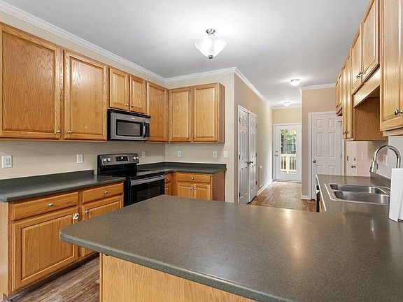 Wonderful 1.5 story home, all bedrooms on the first floor. Nice covered front porch and fenced yard (see notes), low maintenance vinyl siding. French door to large family room w/gas log and marble surround fireplace. Fresh paint thru-out, solid surface counters in kitchen. Smooth ceilings thru-out and low maintenance flooring thru-out home. Dining area is open to the kitchen. Primary Suite w/separate tub & shower, finished bonus area with full bath and efficiency kitchen, could be removed, unpermitted along with back stairs added off the spacious 2 car garage, storage above garage. New deck and porch railings.