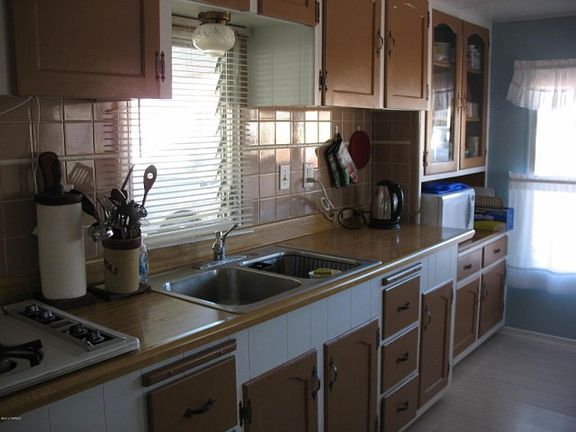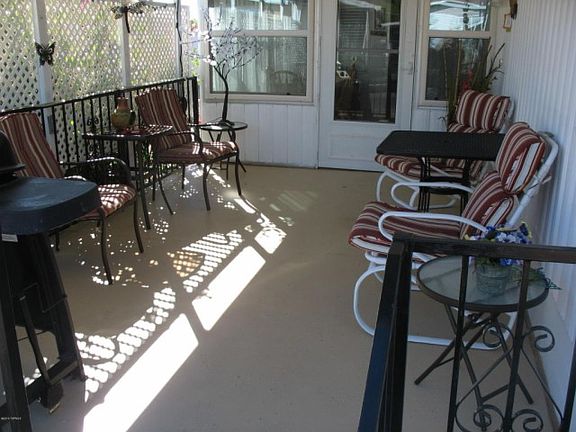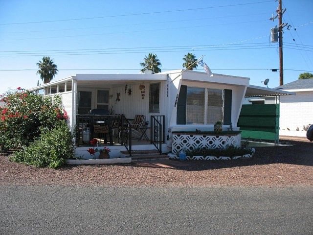 Lovely well maintained COMPLETELY FURNISHED - including a 12 cubic ft stand up freezer - bungalow as neat as can be! Perfect hide-a-way for winter. 1985 Addition aprox 240 sq ft provides plenty of room for guests. Bath has a walk-in shower. Home is on south side of the street for mountain views. Cheery east windows for morning light. Central air, storage shed, covered parking, covered porch. Tucson Estates is an active adult community; hiking, biking, shuffleboard, card clubs, birding, all varieties of hobbies and art activities. Be as busy as you like. Seeing is believing!