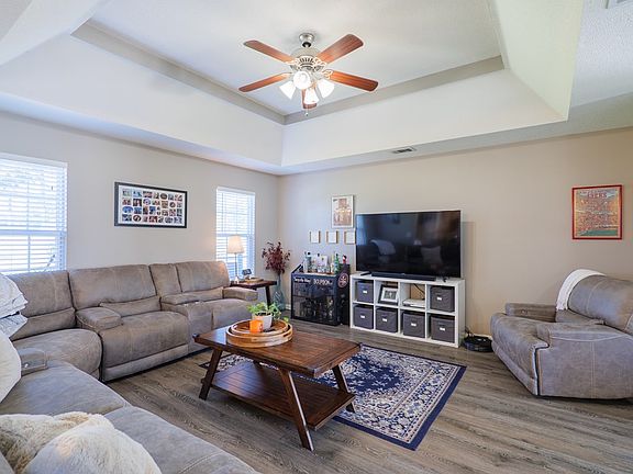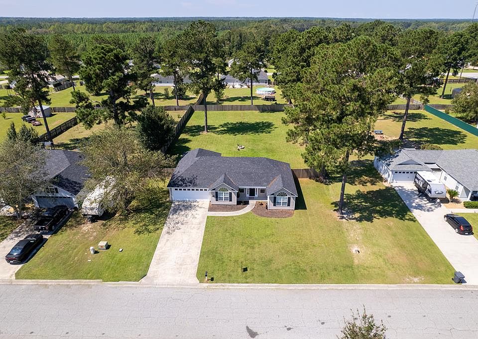 Welcome to your new home in Hahira! This spacious 3-bedroom, 2-bathroom residence offers an open floor plan designed for both comfort and functionality. Step into the inviting foyer with dual closets, perfect for extra storage. The living room is filled with natural light from large windows, creating a warm and welcoming atmosphere. Key updates include a NEW HVAC system (2022), NEW cedar wood privacy fence (2023), and a NEW roof (2024), ensuring peace of mind for years to come. The modern kitchen features a large island, perfect for casual dining or entertaining, along with a pantry, reverse osmosis drinking water system, dishwasher, refrigerator, stove/oven combo, and microwave. Enjoy meals in the breakfast nook or the formal dining room, which showcases a stunning arch window. The dining room can easily double as a home office, playroom, or flex space to suit your needs. The spacious primary bedroom and additional bedrooms provide ample room for relaxation. Sitting on over half an acre, the backyard is perfect for outdoor gatherings around the fire pit, surrounded by mature trees for added privacy. The garage offers even more storage solutions with cabinets and ceiling fans. With no HOA, this property offers the freedom to truly make it your own. Conveniently located just 11 minutes from Moody Air Force Base, 10 minutes from grocery stores and the interstate, and within Lowndes County school district. The property is USDA eligible and also offers a VA assumable loan at a fantastic 3.3% rate!