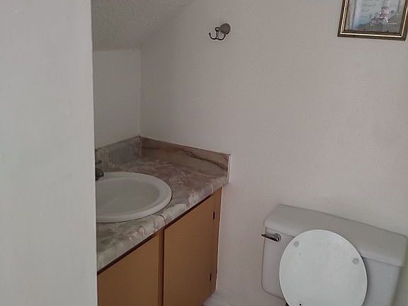 Living room, dining room, kitchen and half bathroom downstairs. Both bedrooms are upstairs and main bathroom. 2 assigned parking spaces (no extras) ice maker. Small backyard patio and storage room with washer dryer hookups STACKABLE ONLY