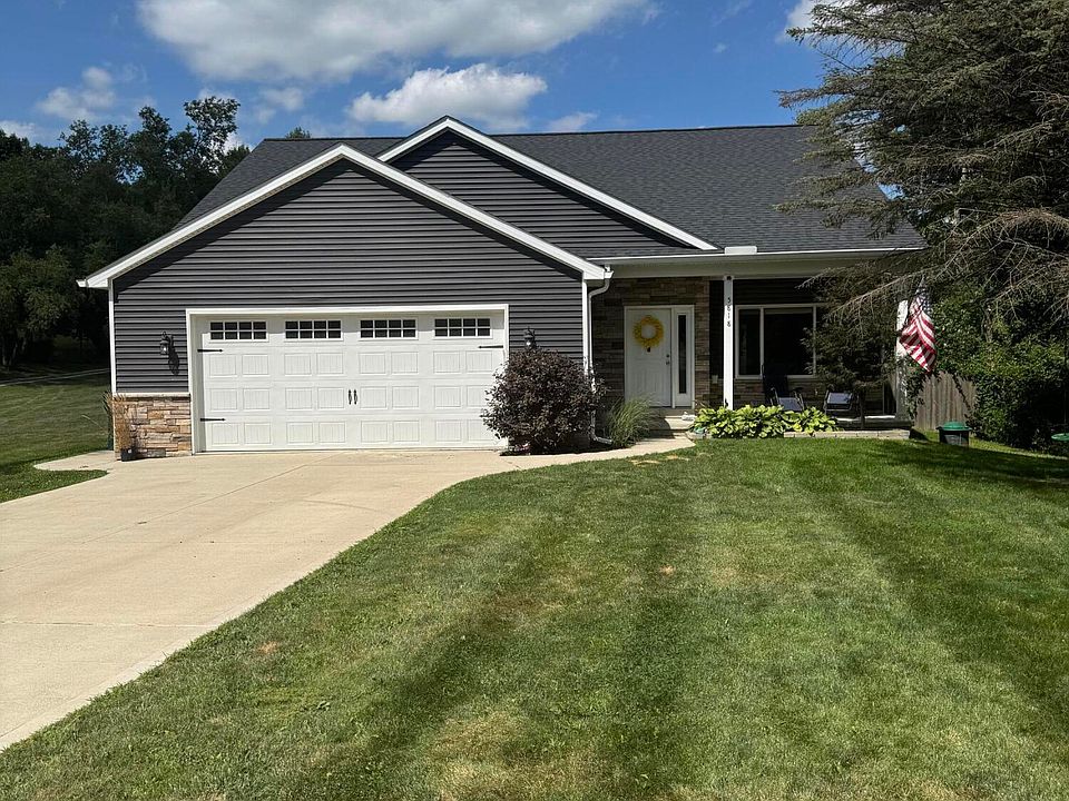 Welcome to this beautiful 4-bedroom, 2.5-bathroom home perfectly situated on nearly half an acre! You'll love the huge backyard, complete with a full privacy fence—ideal for entertaining, relaxing, or letting pets roam freely. Step inside to an open-concept living space with soaring vaulted ceilings, a cozy fireplace, and plenty of natural light. The recently remodeled 4th bedroom adds a fresh modern touch, while the finished basement provides extra living space with a dedicated gaming/computer room. Offering that sought-after country feel yet conveniently close to shopping, dining, and everything you need, this home truly combines comfort, style, and location. This home won't last long. Schedule your showing today! Agent is related to seller.