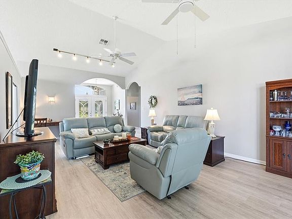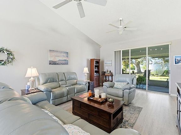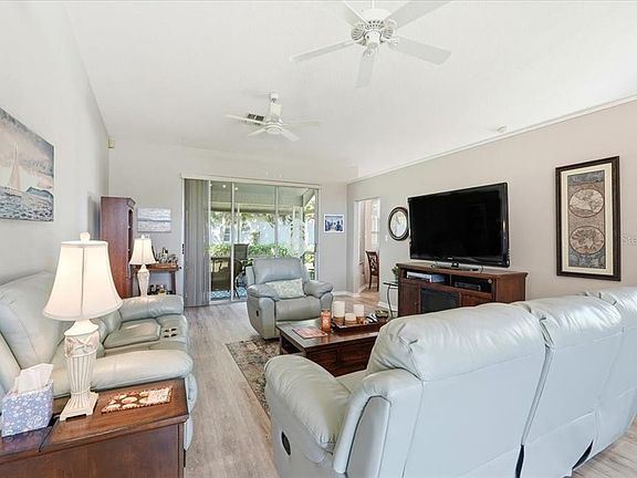 THIS GORGEOUS UPDATED HOME IS AN ABSOLUTE STEAL, PRICED TO SELL!! Nestled in the vibrant 55+ community of Sandpiper Golf & Country Club, this unicorn of a home is 3 bedrooms/2 baths, already has updates to flooring, kitchen and baths, has a bonus room, plus a fully screened back lanai with ceiling fans and a garden view without being in the line of fire for golf balls. The owner’s suite has double vanities, a giant walk-in closet, and a separate shower with built-in bench. The kitchen was redone in Dec of 2021 with contemporary solid wood cabinetry, the interior was painted a nice neutral color in 2023, the flooring (luxury vinyl plank consistent throughout the whole home) was redone in 2018, the front windows were redone in Dec 2024, the garage door was redone in June of 2024, the cut glass double front doors were redone in May of 2010 and give the main entry a tropical upscale vibe, the 3.5 ton heat pump HVAC system was redone in Sept of 2008, with a regular maintenance contract on it, the home is under an annual termite prevention contract with Truly Nolan, the hot water heater was redone in 2018, and the roof was redone in Aug of 2012. The lawn maintenance is included in the LOW HOA dues, along with cable, internet, 2 pools, sauna, 2 hot tubs, pickleball, tennis, water volleyball, water aerobics, shuffleboard, cornhole, BBQ grills, Clubhouse, Recreation Center, gym, weekly bingo, billiards, yoga, Tai Chi, table tennis, strength training, Pilates, cards, puzzles, travel club, crafting club, dances, singles club, and so many regular activities and clubs that it's hard to count! Come join us at Sandpiper, we live in luxury without breaking the bank, and you can too! VIDEO WALKTHROUGH AVAILABLE.