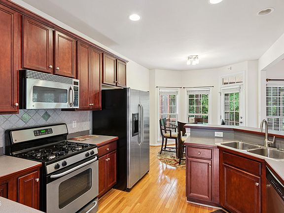 N. Raleigh home for sale! This beautiful 4BR, 3BA home offers a grand 2-story foyer, 9' ceilings downstairs, and stylish trim work throughout the main level. Enjoy formal living & dining, a spacious family room, and eat-in kitchen with stainless appliances, gas stove, 32'' cabinets, pantry, tile backsplash, and hardwood tread stairs with open railings. Bedroom + full bath on main floor. Upstairs: Jack & Jill bath, large walk-in closets, laundry room with cabinets, and an expansive owner's suite featuring a tray ceiling, sitting area, soaking tub, separate shower, water closet, and dual vanities. Additional highlights: gas fireplace, screened porch + extended deck, garage shelving, blinds, ceiling fans, washer/dryer, and CPI Security. Convenient to Triangle Town Center, shopping, dining, HWY 540 & WRAL Soccer Park! Enjoy Riverside's community pool, tennis court, and playground. Welcome home!