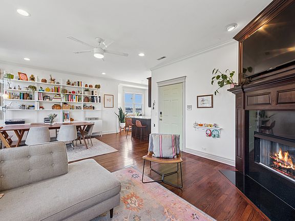 Edgewater Beach - This 3BR, 2BTH penthouse condo is located on a beautiful tree-lined street, just two blocks from the lakefront. It offers direct access to Kathy Osterman and Lane Beaches, as well as proximity to the Red Line Thorndale stop and the Purple Line. This home features 365-degree views and unobstructed southern light, ideal for sun lovers. It includes two outdoor spaces-a front balcony and a large back deck-along with a coveted and hard to find on-site, private 2-car garage included in the price! The open floor plan boasts spacious rooms, including a living room with a gas fireplace and an east-facing balcony. The adjacent dining room features a high-end custom wall unit with shelving and cabinetry. Additional highlights include side-by-side in-unit laundry, large bedrooms with custom closets, and a primary suite with a walk-in closet and an ensuite bathroom equipped with double sinks, a separate shower and bathtub. Enjoy this vibrant Edgewater neighborhood with restaurants, gyms, cafes, and grocery stores all right outside your door and an only a short distance to Andersonville as well. Public transportation and Lake Shore Drive provide easy access to downtown Chicago or Evanston for a quick commute.