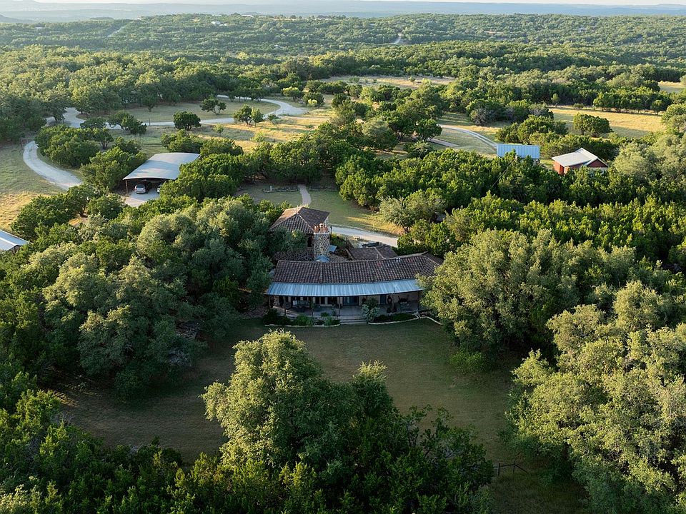 Mystic Sky Ranch is a rare 26-acre Hill Country estate near Austin, designed as a multi-structure compound rather than a single residence. The property includes a main estate, four private guest casitas, a dining hall with commercial kitchen, an event barn, and a pool pavilion—offering exceptional flexibility for private living, hosting, or retreat use. Originally part of the historic Peyton Colony, the estate is thoughtfully sited across rolling terrain with heritage oaks, curated outdoor spaces, and a cohesive architectural vision. In total, the property offers over 10,000 square feet of living and gathering space across multiple purpose-built structures, each distinct in function yet unified in design. The main residence, designed by architect David Webber of Webber + Studio, features native stone, timber, and glass with strong indoor-outdoor connectivity and Hill Country views. Four standalone guest casitas provide private accommodations for guests or extended stays. Purpose-built gathering spaces include an event barn and a dining hall with commercial kitchen, supporting both intimate and large-scale gatherings. Outdoor amenities include a pool with pavilion and kitchen, sauna, shaded seating areas, and walking paths throughout the property. A wildlife exemption is in place, supported by native bees and wildflowers. Located within a Dark Sky community, the property offers exceptional night skies and privacy. An adjacent 26-acre tract is also available for those seeking additional acreage. Conveniently located approximately 35 minutes from downtown Austin in the Dripping Springs area. Mystic Sky Ranch has also served as a successful event and retreat setting. Business operations are not included, though the owners are open to conveying them separately.
