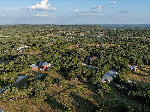 Most properties are found. But every once in a while, a property finds you. Welcome to Mystic Sky Ranch—a soul-stirring 26.6-acre ranch in the Texas Hill Country, where land stretches wide, history runs deep, and beauty feels sacred. Rooted in legacy and designed for a life well lived, this rare convergence of nature, architecture, and soul was once part of the historic Peyton Colony. Rolling hills, heritage oaks, and curated structures come together to offer something truly extraordinary. In total, the ranch offers 10,000+ sq ft of living and gathering space: a 3,000-sf main residence by David Webber of Webber + Studio, four guest casitas, a 3,200-sf dining hall with commercial kitchen (could be turned into an additional residence as part of a Family Compound), 1,800-sf event barn, and pool pavilion with kitchen and bath. Each space is distinct yet unified in design—an intentional blend of utility, soul, and Hill Country character. The property also features a 60,000-gallon rain-water collection system. The stone-and-glass main residence rises from the hillside, blending indoors and out. A glass-wrapped kitchen anchors warm, intimate living spaces, while outdoor dining areas, a wood-fired pizza oven, and twinkle-lit trees create magic. Guest casitas tucked into the trees invite rest, while a sauna, sunlit pool, bocce courts, and hammocks encourage leisure. Connection is the heartbeat of the ranch, with gathering spaces that host weddings, retreats, and celebrations. A 150-year-old oak, lavender fields, winding trails, and wildlife exemption underscore its natural beauty. Located in a Dark Sky community just 35 minutes from downtown Austin, Mystic Sky Ranch offers rare seclusion within reach. Currently home to a successful retreat and event venue, it presents not only a private sanctuary but also a thriving business opportunity—an inspiring legacy of beauty, connection, and possibility.