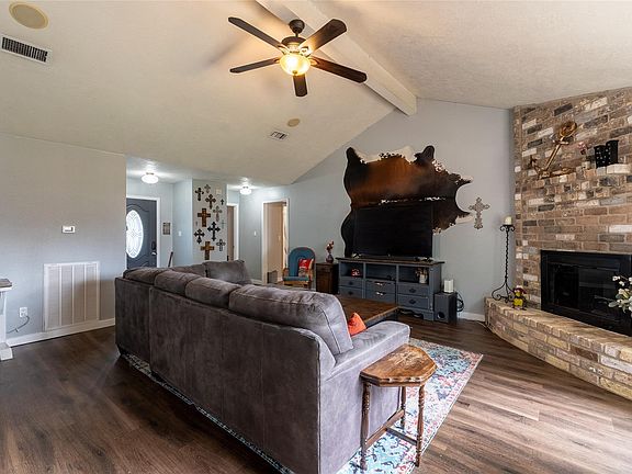 This charming 4-bedroom, single-story home offers great curb appeal with a covered front porch and inviting courtyard entry. Inside, enjoy granite countertops, custom cabinets, stainless-steel appliances, and a cozy wood-burning fireplace that creates a warm, inviting atmosphere.
