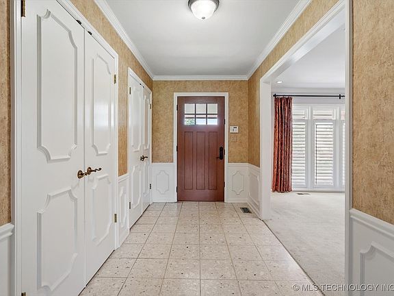 This Ranch style home is located in a cul-de-sac across from Southern Hills CC. Remodeled kitchen with all wood Kraft-Maid cabinets. Light & bright with the kitchen open to the vaulted ceiling den with wood burning fireplace. Doors open to the covered, screened patio. Interior painted recently. Extra space upstairs could be finished out!