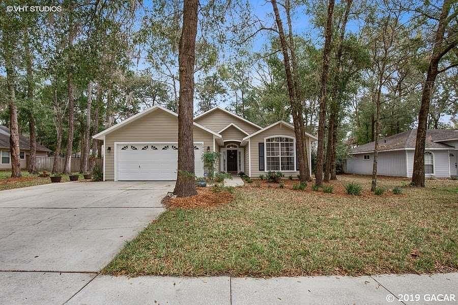 OPEN HOUSE - Saturday, February 23, 10am to 12pm - You will fall in love with this immaculate, well kept home in Hickory Forest. Come and enjoy the open concept split floor plan of this home and imagine peaceful days with no fighting over the bathroom in this 3BR/3BA, 1574 sqft with fireplace. The owners took care of every single detailed to be a move in ready. Wood laminate flooring throughout the house, new sinks and light fixture in the bathroom, and fresh paint. Subdivision offers pool, clubhouse, playground, and tennis court with a low HOA fee. Zoned for A+ schools: Wiles Elementary, Kanapaha Middle, Buchholz High. Just minutes from UF/Shands and close to Haile Plantation Village, Butter Plaza shopping and Celebration Pointe. The location can't be beat. Come and see this home, it won't be on the market long!