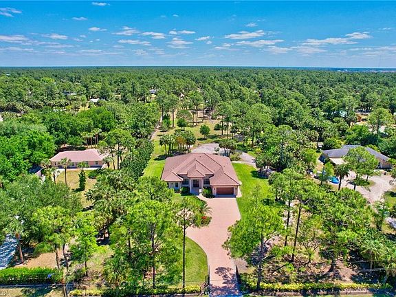 Experience the pinnacle of luxury with this custom-built, model-like estate home on a secluded 2.73-acre lot in Naples. 100% UPLAND HIGH AND DRY, a private retreat is ready for its new owners! Gated and just a stone's throw from Collier Blvd and its myriad of amenities. From the moment you approach the long, paved circular driveway, this home captivates with its elegance and unparalleled attention to detail. The split floor plan offers 3 expansive bedrooms plus a den, 3.5 bathrooms including a second bedroom with its own bath, and myriad luxurious touches such as wooden coffered ceilings, extensive crown molding, 9-inch baseboards, and opulent 24"x24" marble flooring. The chef's kitchen is a masterpiece, boasting a double oven, cook-top, granite countertops, an island, and cabinets with soft-close features, complementing a master bath with a walk-through shower, jetted tub, and dual vanities set against lovely tile accents. LED lighting throughout, a whole-home reverse osmosis system, dual AC units, impact-resistant windows and doors, and 8ft solid wood interior doors, plus spray foam insulation for optimum efficiency. Outdoors, the large lanai with an outdoor kitchenette sets the stage for exquisite entertaining, while a concrete slab offers convenient boat storage amid beautifully landscaped grounds brimming with fruit trees. This estate combines the tranquility of secluded living with the convenience of proximity to Naples’ vibrant life. Don't miss the opportunity to claim this private paradise; schedule your tour today and embrace the luxury you deserve!
