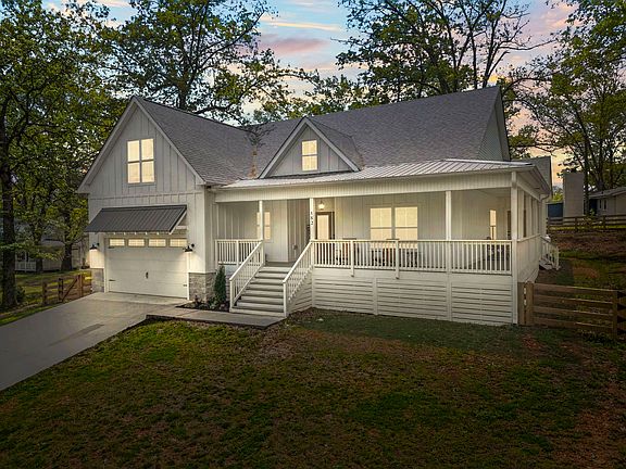 This beautiful home sits on a .75 acre fenced lot with mature trees and a wraparound porch that invites you to sit and stay awhile. *No HOA* allows for the freedom to build a storage shed for that riding lawnmower. French doors open to reveal a wood-beamed ceiling and custom hall tree. The living space features vaulted ceilings, recessed lighting and a gas fireplace. Chef’s kitchen is complete with stainless-steel appliances, farmhouse sink, and a spacious walk-in pantry. The owner’s suite has a tray ceiling and recessed lighting. The double vanity en-suite includes a freestanding soaking tub, a separate tiled shower, and a walk-in closet. Just off the garage, there is another hall tree drop zone, plus the laundry room (washer & dryer will remain). Bonus-room has a roomy walk-in closet and attic storage. This home provides a peaceful refuge in the heart of Clarksville. Don't miss the chance to tour this charming country escape and discover its beauty in person!