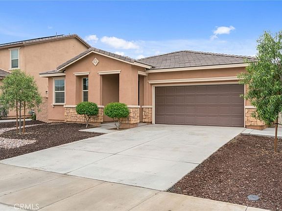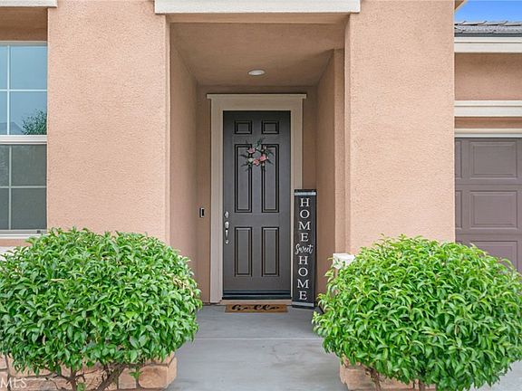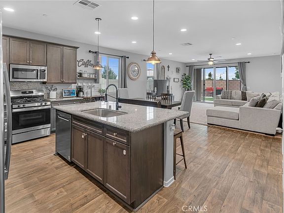 Welcome to this stunning single-story home in the desirable Seasons at Green Valley Ranch community! Built with modern living in mind, this nearly new home offers 3 spacious bedrooms plus a versatile office/flex room that can easily serve as a 4th bedroom. Step inside to discover stylish upgrades throughout, including custom paint, luxury vinyl plank flooring, and recessed lighting. The open-concept floor plan seamlessly connects the great room, dining area, and gourmet kitchen, perfect for entertaining and everyday living. The kitchen is a showstopper, featuring custom cabinetry, a large center island, granite countertops, stainless steel appliances, and elegant pendant lighting. The private primary suite includes a generous walk-in closet and an ensuite bath with dual sinks and a walk-in shower. Two additional bedrooms are generously sized and share a well-appointed full bathroom with upgraded cabinetry and lighting. Enjoy indoor-outdoor living with double sliding doors that lead to a beautifully designed backyard. Highlights include a built-in covered patio, low-maintenance artificial turf, a custom gazebo with lighting, a built-in fire pit, and attractive hardscaping, ideal for hosting guests or relaxing with family. Block walls and vinyl fencing provide privacy and a finished look. Don’t miss your chance to own this beautiful home in a growing and vibrant area of Perris. Schedule your private tour today!