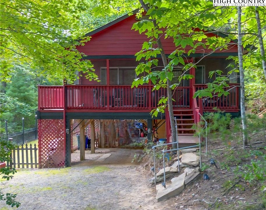 “Tucked away in the mountains of North Carolina, this charming red home stands out; its bold exterior pairs beautifully with its natural surroundings, great for outdoor enthusiasts. The area offers endless opportunities for hiking, hunting, ATV riding, and more. This 2-bedroom, 2-bathroom home sits on over 7 acres of land. The living area boasts a beautiful stone wall with a gas log heater, creating a cozy and inviting atmosphere. The primary bedroom features a free-standing electric fireplace, adding a touch of luxury and warmth. The recently added primary bath features a spacious walk-in shower, a separate toilet closet, and ample closet space. Step outside to enjoy the abundant wildlife, take in the views from the deck. The screened-in porch offers an ideal spot for relaxing while soaking in the natural beauty. Whether you’re drawn to its classic farmhouse feel or its cozy cottage charm, this red house is sure to catch your eye and capture your heart.