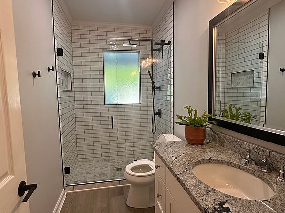 - 2 full bathrooms: one on each floor, recently renovated with tile showers, new cabinetry, granite counters & tile flooring