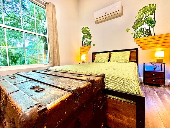 Experience the perfect blend of comfort and nature in this brand-new Jungle Tiny Home, tucked away in the lush heart of Palm Bay. This thoughtfully designed space offers full immersion in a serene, tropical setting complete with your very own private jungle-themed trail right in the backyard. Enjoy relaxing evenings in the hot tub, dine under the stars at the picnic area, and take in the whimsical outdoor decor that makes this home truly one-of-a-kind.