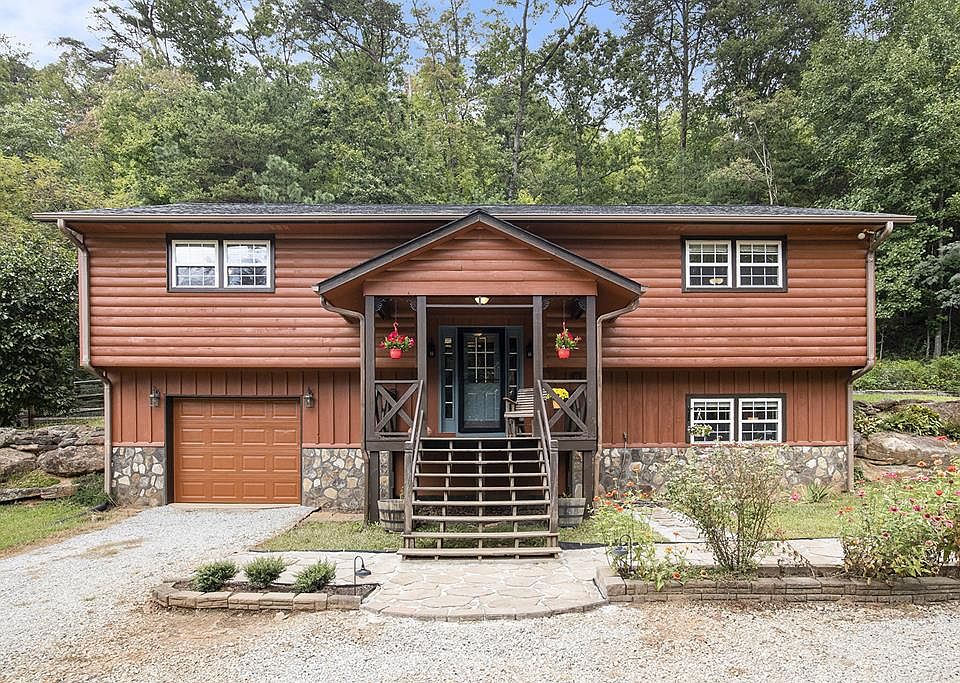 Discover mountain living just minutes from downtown Clayton in this warm and inviting all-wood home. The main level offers an open flow of living spaces with three bedrooms and two full baths, while the finished basement expands your options with a bonus media room, flexible office/studio space, laundry, storage, an additional sleeping room, and a convenient half bath. Highlights include hardwood floors, a cozy gas log fireplace, all new appliances, a newer roof and HVAC system, and a brand-new back porch ready for gatherings. The deep one-car tuck-under garage adds storage and functionality. Outdoors, enjoy the mountain setting from your front yard, a flat circular driveway with plenty of parking, and a gently sloping landscaped lot with a fenced backyard-perfect for pets, play, or entertaining. This home balances comfort, convenience, and mountain charm-whether for full-time living or a getaway retreat. Come see us at 582 Polly Gap Rd.