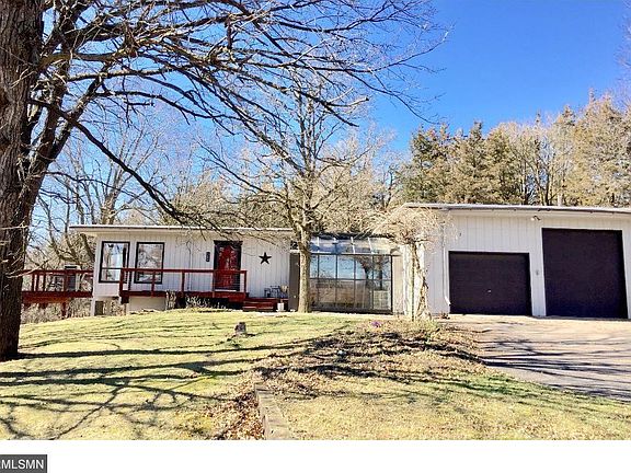 Must see Mid Century Modern situated up high on a 5 acres! This Setting offers great privacy and seclusion yet is only two minutes to 94 and Hudson. The home is filled with natural light and features: a new roof with transferable warranty, updated bath, new carpet, fresh paint both inside and out, new water heater, updated deck & balcony, oversized garage, and walk out basement. Outside, enjoy the mature trees & Panoramic Views with plenty of room for gardening & all your outdoor activities.