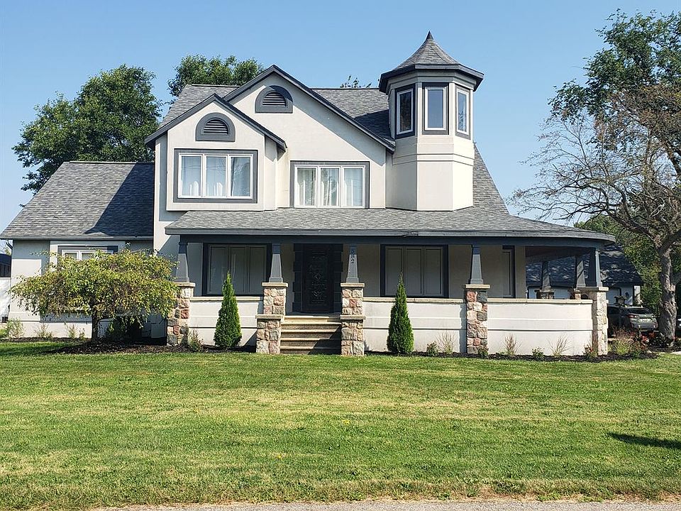 LAND CONTRACT OFFERED!! Wow! Great house with lots of extras! The first-floor primary suite with a large private bath and huge walk-in closet is a great convenience. The formal living room has a beautiful fireplace, hardwood floors, and leaded glass French doors leading into the office. The kitchen has lots of counters and storage and is open to the dining room which leads to a spacious family room with a second fireplace, vaulted ceilings, and a wall of windows. There is also a butler's pantry, laundry room, and half bath on the first floor. Upstairs there are two bedrooms, each with a walk-in closet, a full bath, and a sitting area. The full, clean basement has a 4th bedroom and 3rd full bath. Amazing is what you say when you see the wrap-around porch, shaded backyard, nice landscaping, and SIX CAR detached garage with water!