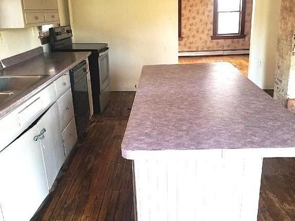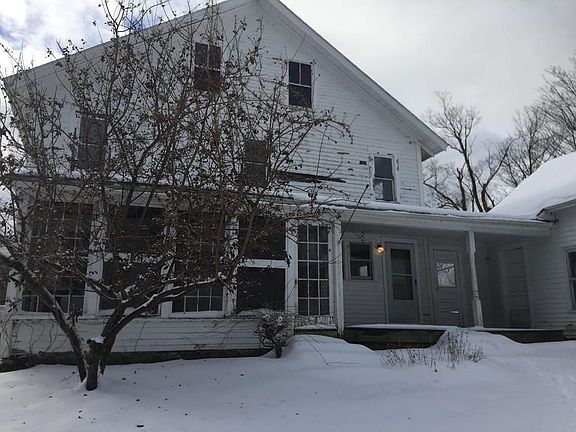 "This Old House" is a large three story well laid out farmhouse with plenty of room to grow into!!! She is just waiting for her next large family to come love her like her last large family and finish the remaining work for her to shine! This home can be lived in and worked on slowly if needed!! This expansive home has large rooms w/ all wood flooring throughout, patio door to rear yard, field stone wood burning fireplacd living room, FIVE bedrooms with 2 full baths, double stairway, could have first floor bedroom if needed as there is a first floor full bath!! Bonus additional space on the 3rd floor walk up attic!!! Huge detached 3 plus garage with work shed/ shop area, nice large private yard with farm behind, Enclosed porch, covered deck! Some big items already done ( roof approx 10 years, septic approx approx 13 years ago per Seller)...Home is located close to town center and major rds... A lot of home for the money here, "this old house" lovers dont miss this one