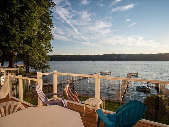 Beautiful 3 bedroom, 2 bath Conesus Lake Waterfront Home with 40' of frontage! Fully furnished. New Lakeside composite deck & good sized level yard for campfires and lawn games. 2 story spectacular wall of lakeside windows including French doors to the deck. Open floor plan with cathedral ceilings & beautiful natural woodwork throughout. Huge second floor bedroom, ideal for a large master or large bunk room for guests. There is a full bath on the 1st and 2nd floors & 2 bedrooms on the first floor. A screened in porch and shed are on the roadside. Store all your lake toys, kayaks etc in the walk-out basement to the lake. Enjoy incredible views, boating, water skiing, swimming, fishing and breathtaking sunsets every evening. There is really nothing like lake living! Don't miss out! Delayed negotiations until Thursday, August 20, 2020 @ 3:00pm