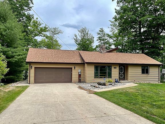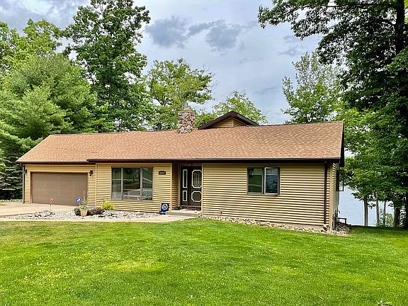 Come home to Amazing Lake Views! This remodeled open-concept, 3 bedroom, 3 full bathroom home boasts 154' of sandy, Lake Frontage on Arnold Lake. The kitchen features a large island, hickory cabinets, and stainless appliances. The kitchen/great room has 6" pine tongue & groove, cathedral ceiling, and ceiling fan. All bedrooms are on the main level. The master bedroom has an ensuite bathroom and lake views. The bathrooms have hickory vanities and tile floors. The lower level full bathroom features red-cedar tongue & groove. French doors lead from the great room onto a huge deck (28' x 16"). The 2nd level deck and fire pit measures 26' x 14'. While the lakeside deck is 29' x 12' and features understair storage and a tiki bar with electrical and lights. Updates include 12" tile flooring, inground sprinklers, septic, ADT security system, on-demand water heater, gas fireplace with blower, mini-split air conditioner/heater in the master bedroom and great room, and water softener. **There are 3 buildable, wooded acres across the private drive. The home uses propane and also has natural gas capability. There is garbage pick up. By appointment only, please call 989-339-4485