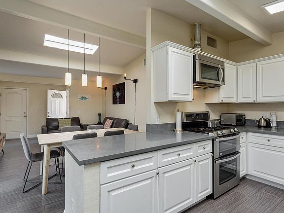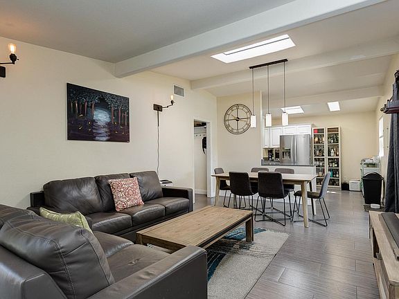This lovely turnkey 3-bedroom home has a salt water swimming pool! There is an open floor plan, central a/c, and a spacious backyard with a covered patio, which is perfect for entertaining. There is new flooring, updated kitchen, newly remodeled bathroom, newer roof, updated windows, and skylights with plenty of natural lighting. There is an attached two car garage with direct access and a driveway for plenty of parking. It is conveniently located nearby the freeway, shopping centers, and schools.