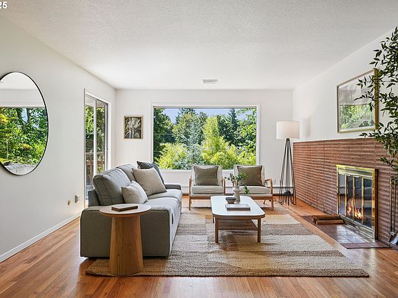 This mid-century modern home sits in the heart of Maplewood, one of Portland’s most beloved neighborhoods. Tucked beside April Hill Park and just blocks from Gabriel Park and Maplewood Elementary, it’s perfectly placed for peaceful strolls and a cozy, connected lifestyle. It's a quiet, private retreat, close to everything. Inside, you’ll find a lovely mix of original charm and modern updates. The kitchen was refreshed in 2020 with new appliances, clean lines, and a gorgeous vaulted wood ceiling that brings warmth and character. The main level features rich original hardwood floors, while the lower level has durable, stylish new luxury vinyl tile. Radiant heat throughout, with a new (2020) high-efficiency boiler, and a new (2020) AC system, both with multiple zones to keep things comfortable year-round. The lower level adds tons of versatility with a spacious living room, new gas fireplace (2022), and sunroom. Whether you're hosting guests, working from home, starting a creative project, or considering a future ADU, there's room for it all. With five bedrooms, multiple living areas, and smart separation of space, this home adapts easily to your needs. Step outside and you’ll find one of the home’s most special features: a lush, private 1/3 acre yard, thoughtfully designed by a master gardener. The refinished sunroom and deck are perfect for soaking up long summer days, enjoying your morning coffee, or dining under the trees. With major updates already done—including a new water main in 2024—this is a home that’s ready to be lived in and loved.OPEN HOUSE SATURDAY 8/9 from 10am-12pm [Home Energy Score = 1. HES Report at https://rpt.greenbuildingregistry.com/hes/OR10182804]