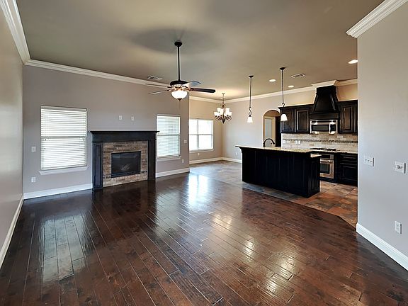- Exterior features: Granite countertops throughout, Storm shelter, irrigation system, large kitchen island, stainless steel appliances