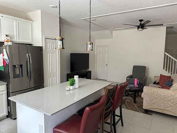 Welcome to your dream home in the highly sought-after FishHawk Ranch West community! This beautiful 3-bedroom, 2.5-bath townhouse is a true gem, boasting a well-thought-out design that perfectly blends comfort and style. As you step inside, you'll be greeted by an inviting open-concept living space adorned with elegant tile flooring throughout the main level. The kitchen is a chef's delight, featuring a spacious island with ample storage, elegant quartz countertops, and updated light fixtures. A charming pantry and modern appliances add to the convenience of this space. The kitchen seamlessly flows into the dining and living areas, creating a perfect setting for entertaining. One of the highlights of this home is the screened-in lanai, accessible through a two-door glass slider from the kitchen. Enjoy your morning coffee or evening relaxation with serene tree-lined views that provide a sense of tranquility and privacy. The main level also includes a convenient half bath for guests and a drop zone off the garage entrance, ensuring comfort and functionality. Ascend the carpet covered stairs to discover the spacious primary bedroom, a true retreat with tree views, a large walk-in closet, and an en-suite bathroom. The primary bath features dual vanity sinks with quartz countertops and an enclosed tiled shower with glass doors, offering a spa-like experience. The second and third bedrooms share a full bathroom with a tub-shower combo, making it perfect for family or guests. A large laundry room, conveniently located next to the master bedroom, includes a new washer and dryer with smart technology, adding to the home's practical features. Ceiling fans in every room throughout the home add to its charm and appeal. This townhouse also includes an attached two-car garage and a tankless water heater for added efficiency. The unbeatable location within FishHawk Ranch West offers great walkability to grocery stores, retail shops, and offices. Enjoy the community's fantastic amenities, including two pools, two dog parks, multiple playgrounds, a lake house with onsite management, a game room with pool tables, ping pong, and foosball, and a gym with stunning lake views. Walking trails and quick access to I-75 ensure that you're never far from the action in Tam
