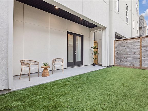 Wow factors galore in this move-in-ready, FULLY FURNISHED like-new home with builder’s warranty. Step through the foyer where a private bedroom with en-suite bath opens to a turfed, fenced-in yard. Custom iron railings lead to the expansive second floor with soaring 12’ ceilings and open living spaces. Designer upgrades include a tile fireplace surround, mirrored accent wall, and custom lighting that elevate the kitchen, dining, and living areas. A balcony extends the living space outdoors. The third floor has a spacious primary suite with double closets and a spa-like bath featuring dual vanities, soaking tub, and oversized shower. The secondary bedroom has been converted into a stunning custom closet but can easily revert to a bedroom. The top floor offers a rooftop deck with city views. Elevator capable to all four floors, this free-standing home blends luxury, comfort, and effortless style. Enjoy lock-and-leave living near premier shops and dining. Book your private showing today!