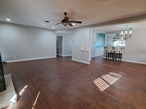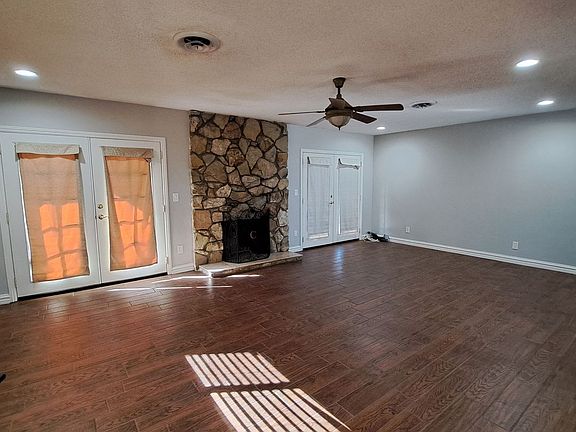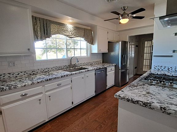 This beautiful home is located in a quiet neighborhood, close to town, a dog park and a playground. The interior features a wood-burning fireplace, a floor plan for entertaining, and all tile flooring throughout for easy care. The kitchen comes with all stainless steel appliances including a stovetop and built-in oven. Lots of extra storage in the laundry room. Just off the kitchen is the formal dining area and the huge living room with cozy fireplace. The backyard is beautiful and a must-see, with nice mature trees and a covered patio! Pull through double gates on each side of the house. Bedrooms all have ceiling fans, window coverings, and large closets. Master bathroom features a huge custom-tiled shower with glass shower doors and a rain showerhead.